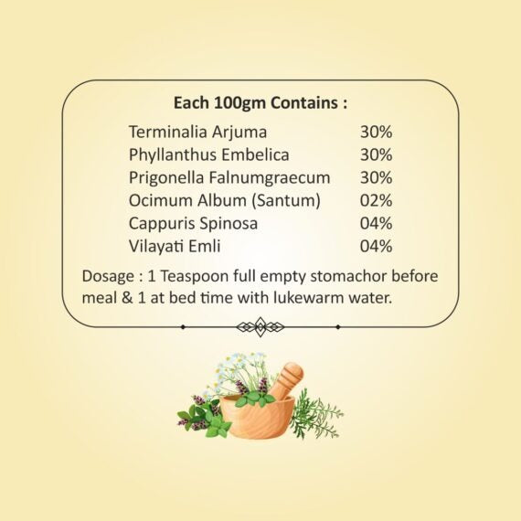 – The Ayurvedic herbs in a powder form help in regulating blood flow and strengthening heart muscles