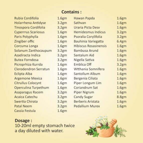 - Ways to consume: dilute 10 to 20 ml of our herbal syrup with water & take it on an empty stomach twice a day or as directed by an Ayurvedic Doctor
