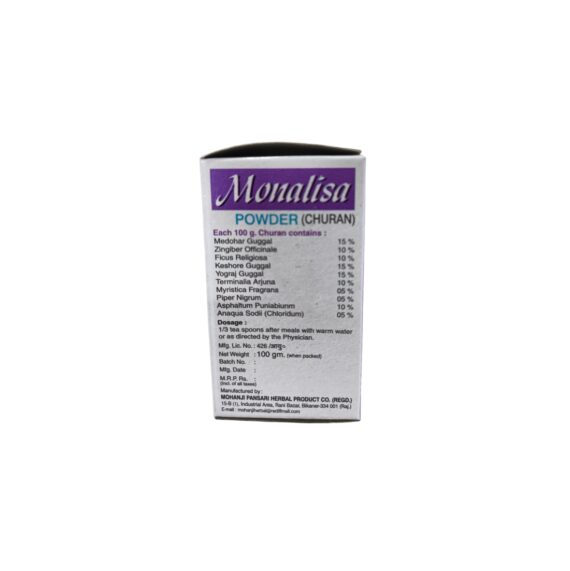 Bring balance to your everyday wellness with Monalisa Powder — a natural blend crafted to support digestion and overall vitality. Rich in herbal goodness, it gently soothes the stomach, eases discomfort, and helps improve nutrient absorption for better energy throughout the day. More than just a digestive aid, it nurtures your body’s inner harmony, keeping you light, active, and refreshed. A simple addition to your routine for a healthier, happier you.